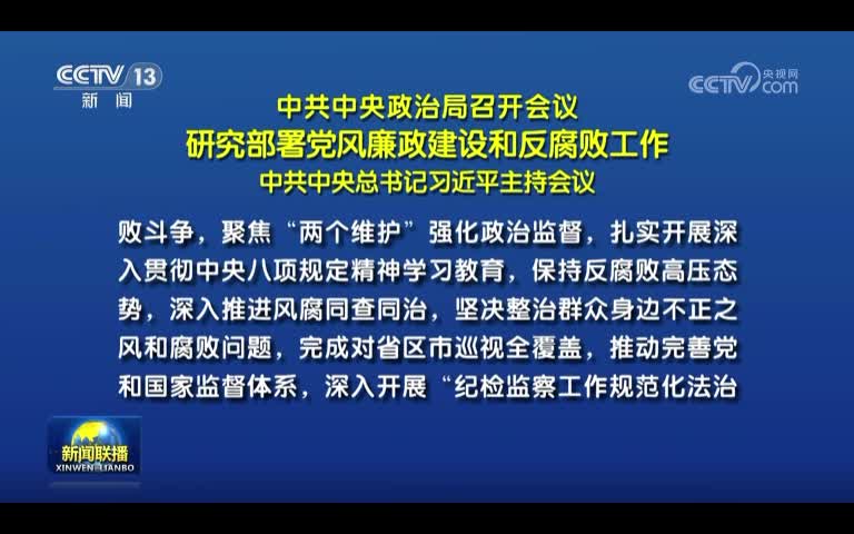 中共中央政治局召开会议 研究部署党风廉政建设和反腐败工作 中共中央总书记习近平主持会议